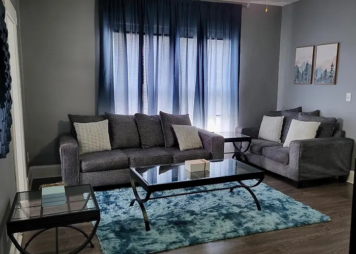 2 Bedroom Apartment With King Suite In Columbus, Privacy Of The Whole House has a dressing area, and comforts such as climate control. This accommodation offers guests the convenient feature of hairdryers and towels in the bathroom. A separate toilet and a shower can also be found.